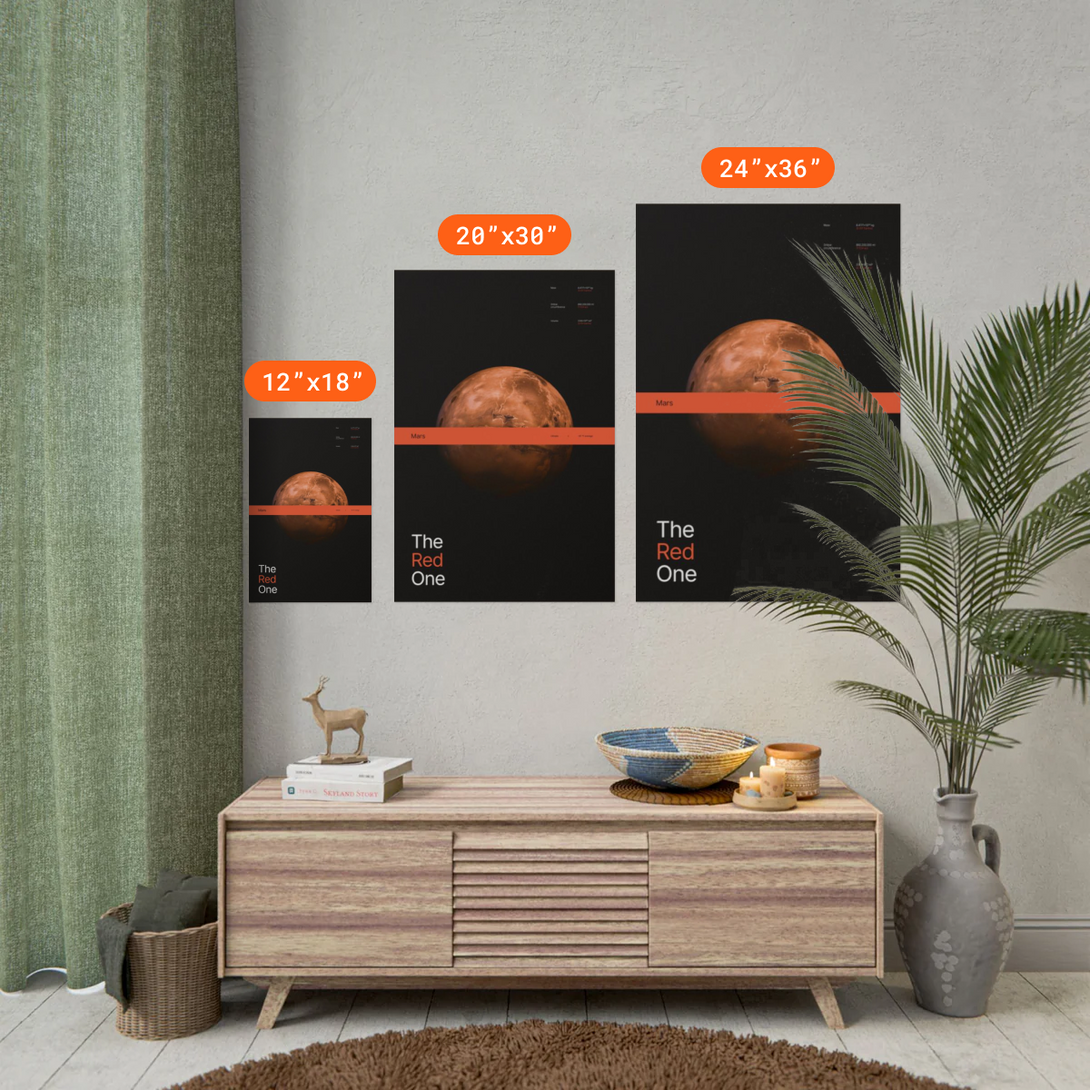 - • 24 x 36 in: Large and eye-catching. Perfect to highlight intricate artwork.