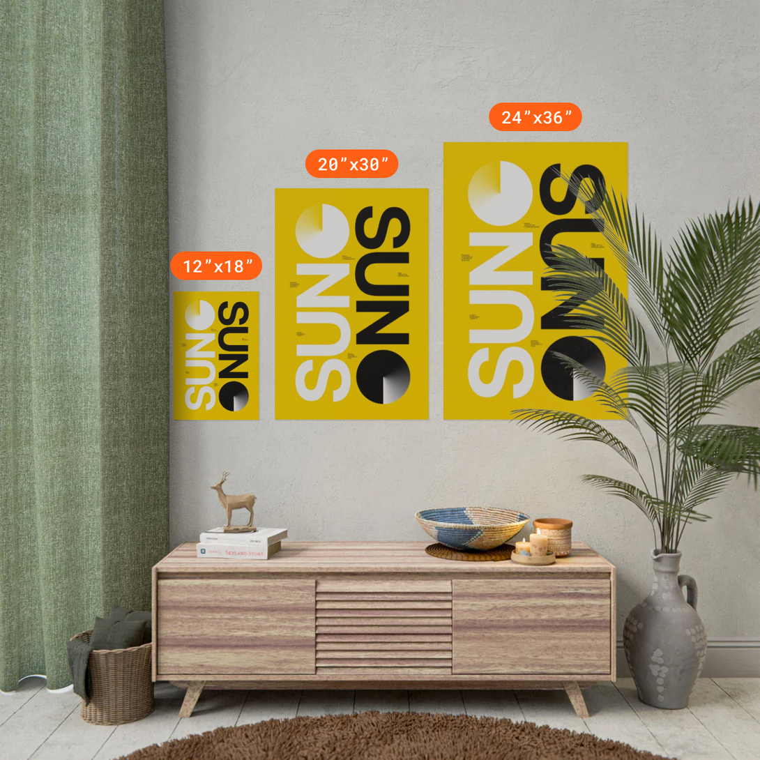 - • 24 x 36 in: Large and eye-catching. Perfect to highlight intricate artwork.